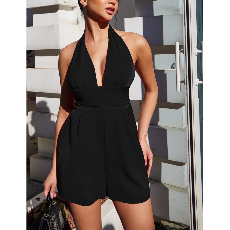 - Match: This women's halter V-neck sleeveless romper features a chic design and fashionable cut to add a splash of color to your summer wardrobe. A simple pair of sandals or heels can transform the look.
