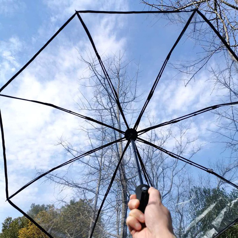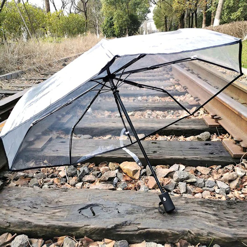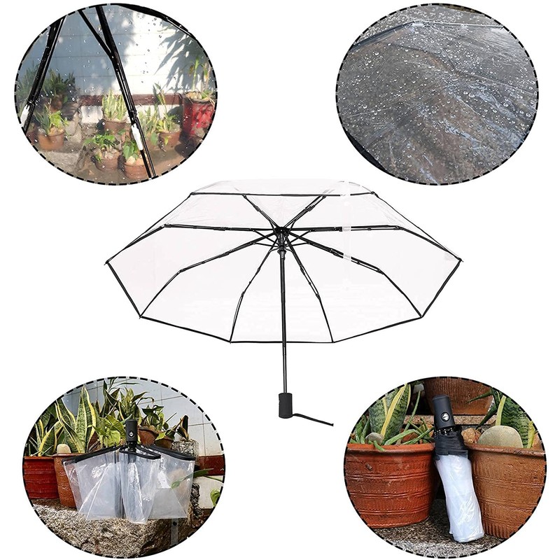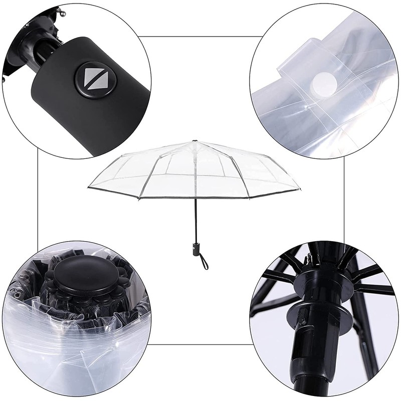 Gokelomg 2 x Transparent, Automatic for Men and Women, Automatic Push Button, Transparent, Foldable, Windproof, Compact, Black, transparent