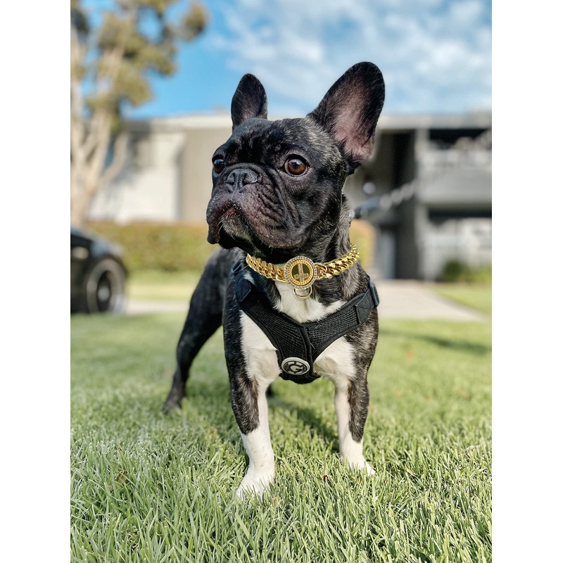 - Feature:chew proof,extra bling 18K Gold tone.Press the button to open or close.