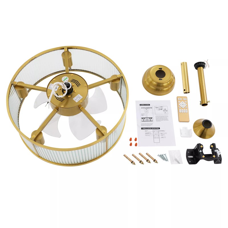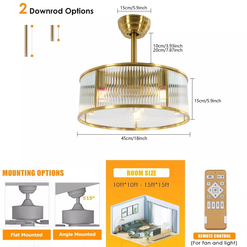 Gold Ceiling Fan Light Indoor Ceiling Fan Lamp for Bedroom with Remote Control