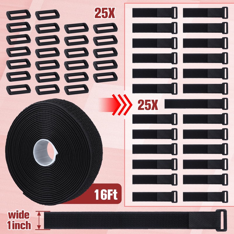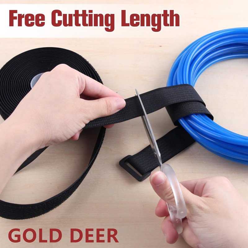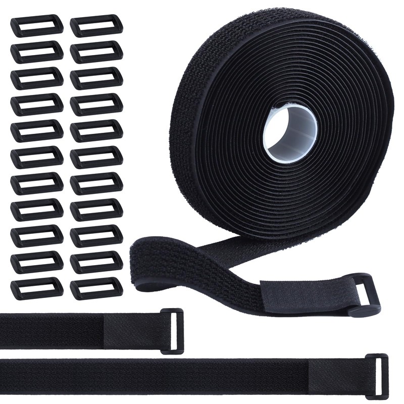 GOLD DEER 16Ft x 1In Adjustable Cable Straps with 25 Buckles Free Cut Length Hook and Loop Fastening Cable Straps Reusable Nylon Securing Cord Ties for Cable Tidy Wire Management Cord Organiser Black