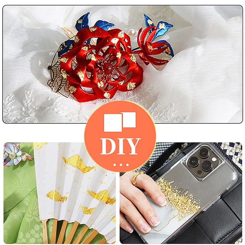 - Set Contents: 100 pieces of fake gold foil, 1 piece brush, 1 piece of non-magnetic tweezers