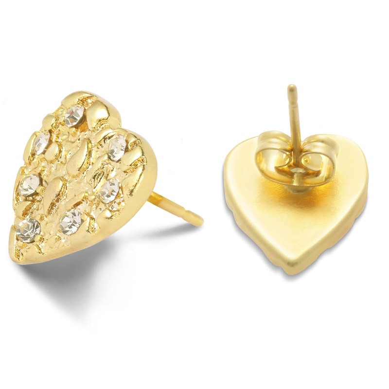 - Gold-Plated Brilliance: These Gold Nugget Earrings Heart stud earrings are a stunning showcase of gold-plated craftsmanship. The gold-plated finish adds a touch of luxury and sophistication, giving the earrings the appearance of solid gold.