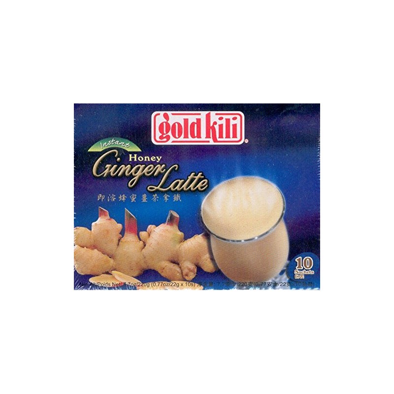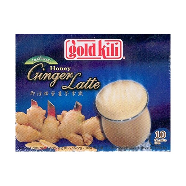 Gold Kili Brand Instant Honey Ginger Latte in 7.7oz (220g) box. 1 box contains 0.77oz x 10 sachets. Product of Singapore.