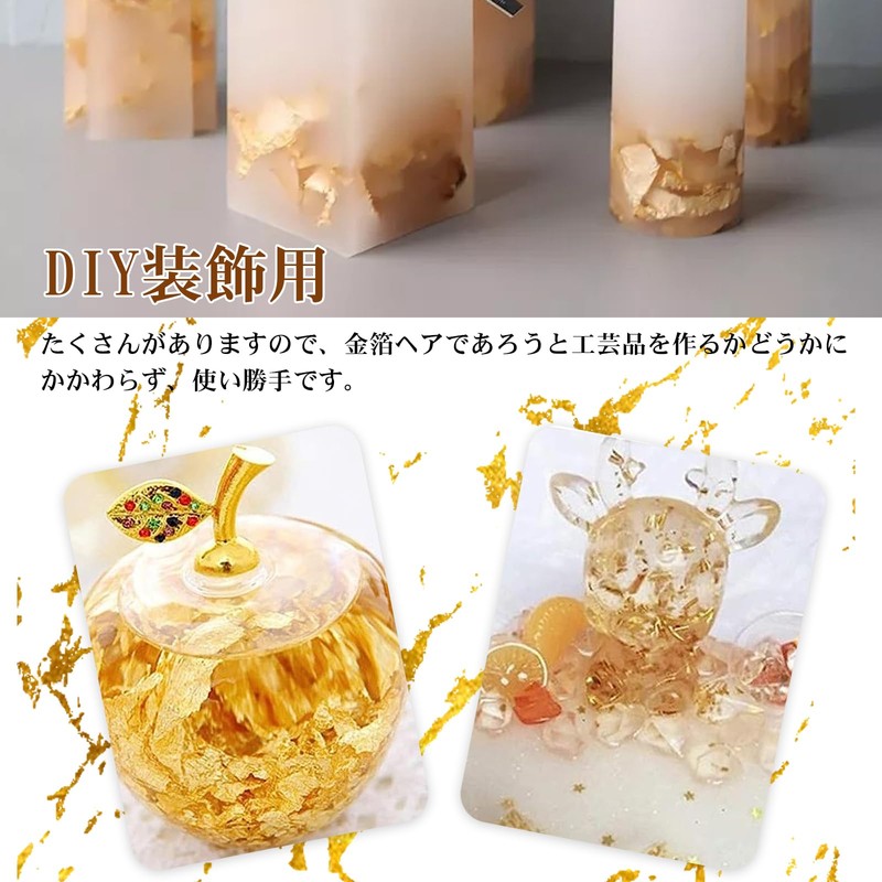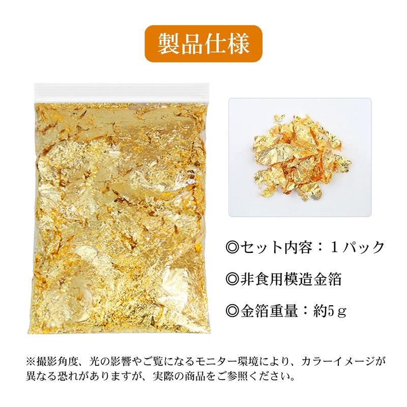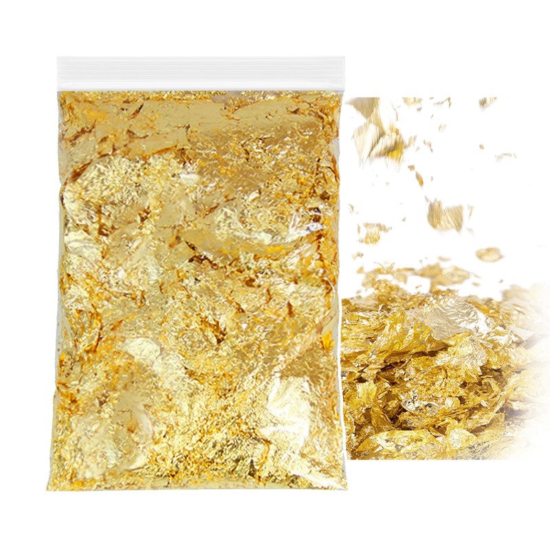 - 【Amazing Gold Foil Flakes】 Gold foil flakes are not real gold, they are imitation gold material, copper and zinc, and the main component of these foil sheets are alloy, so they are not suitable for eating. It creates a stunning glossy texture effect that beautifully displays your furniture and handicrafts, and is also suitable for coming-of-age kimono, yukata, kimono