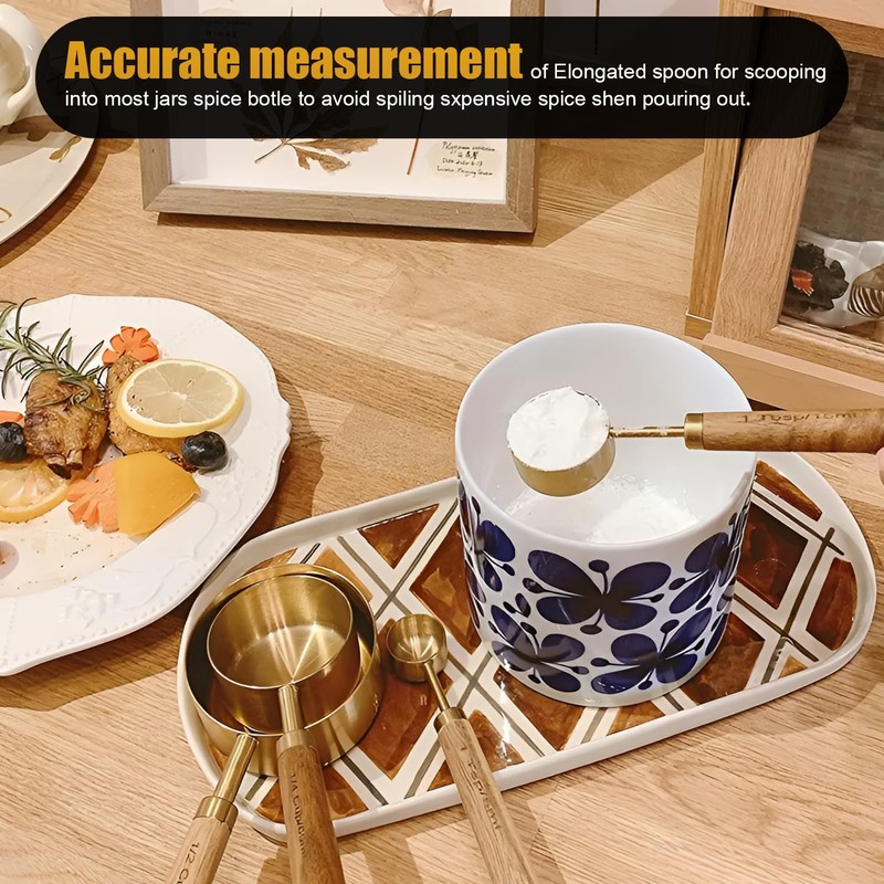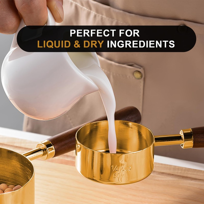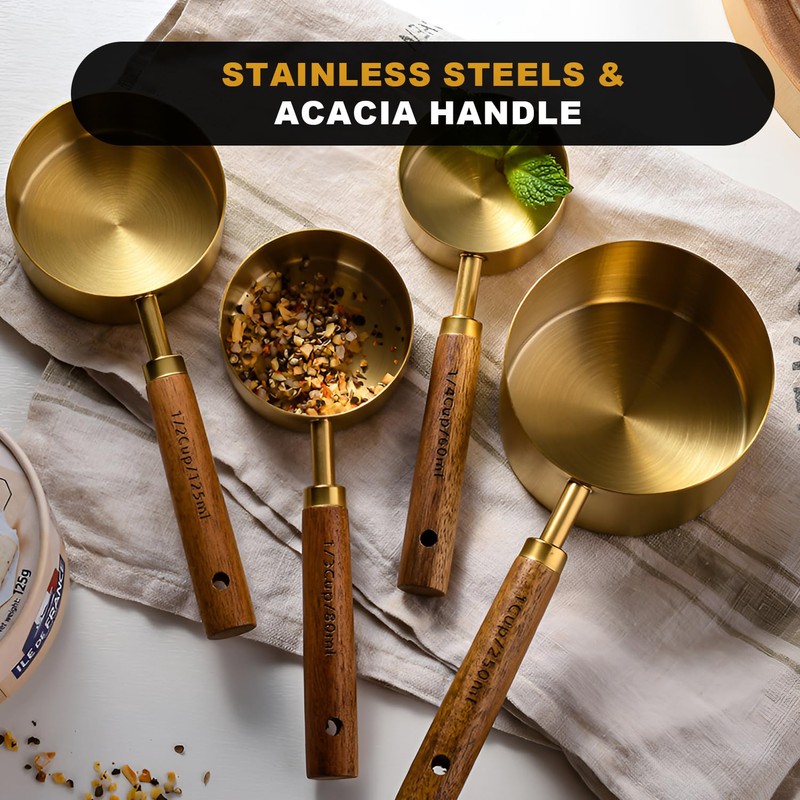 Gold Measuring Cups and Spoons Set with Wood Handles, Premium Stainless Steel...