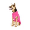 Gold Paw's legendary stretch fleece is a sublimely soft pull-over that is the perfect warm-up for tons of situations: A cool weather walk, three-season pajamas, always cold short-haired dogs, older dogs, puppies, dogs recovering from illness of injury, hairless cats even. Our exclusive material is made with recycled polyester and 7-percent spandex for 4-way stretch so there is no need for annoying closures to lay on or velcro to get hair stuck in. Sewn in the USA of bluesign certified and Oeko-Tex® 100 certified imported textiles. Machine wash cool, do not use fabric softener (it causes pilling in synthetic fabrics), tumble dry low.