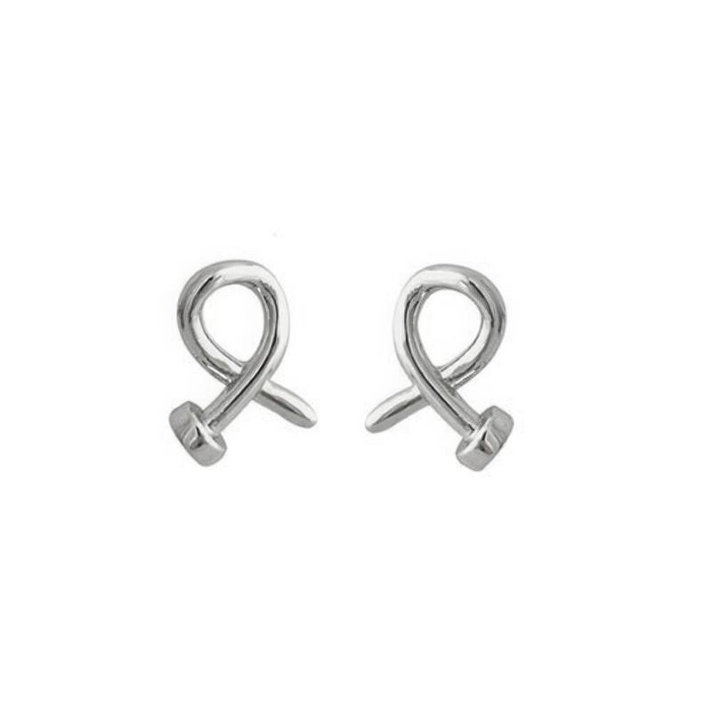 Gold plated crossed nail head stud earring - Select Color: Rhodium