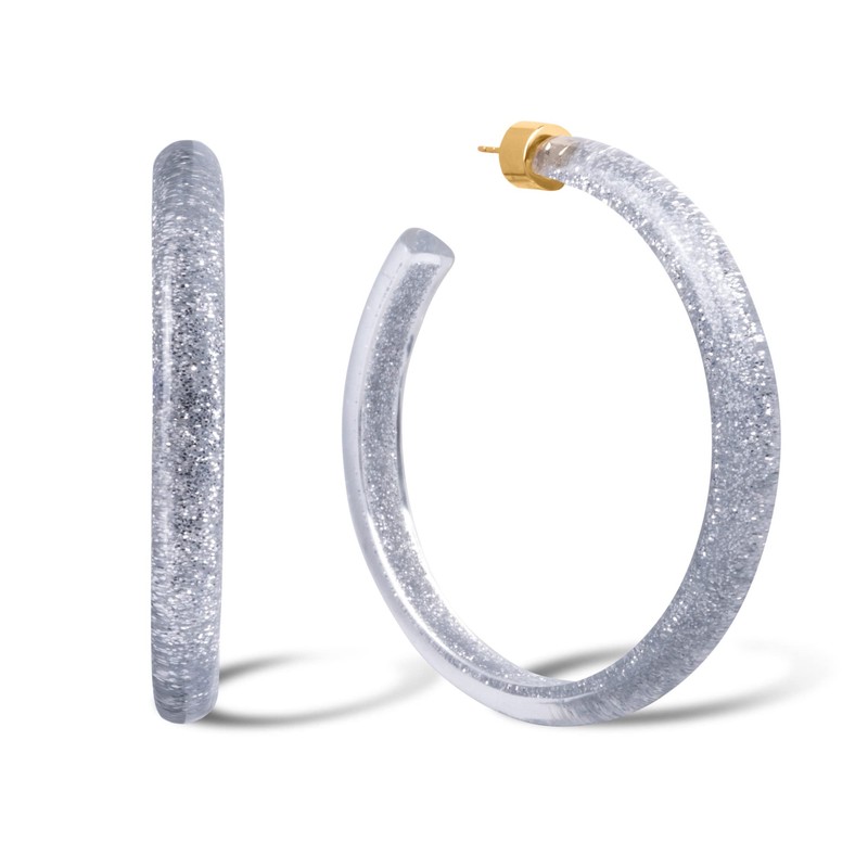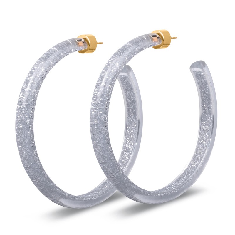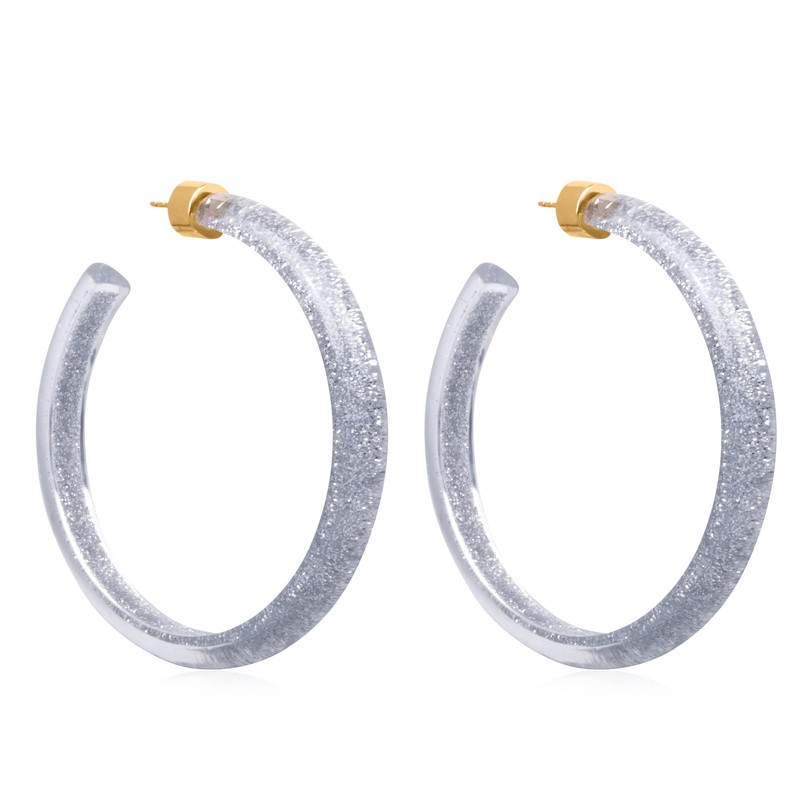 Gold Plated Sterling Silver Clear Lucite/Silver Glitter 60MM Large Open Hoop ...