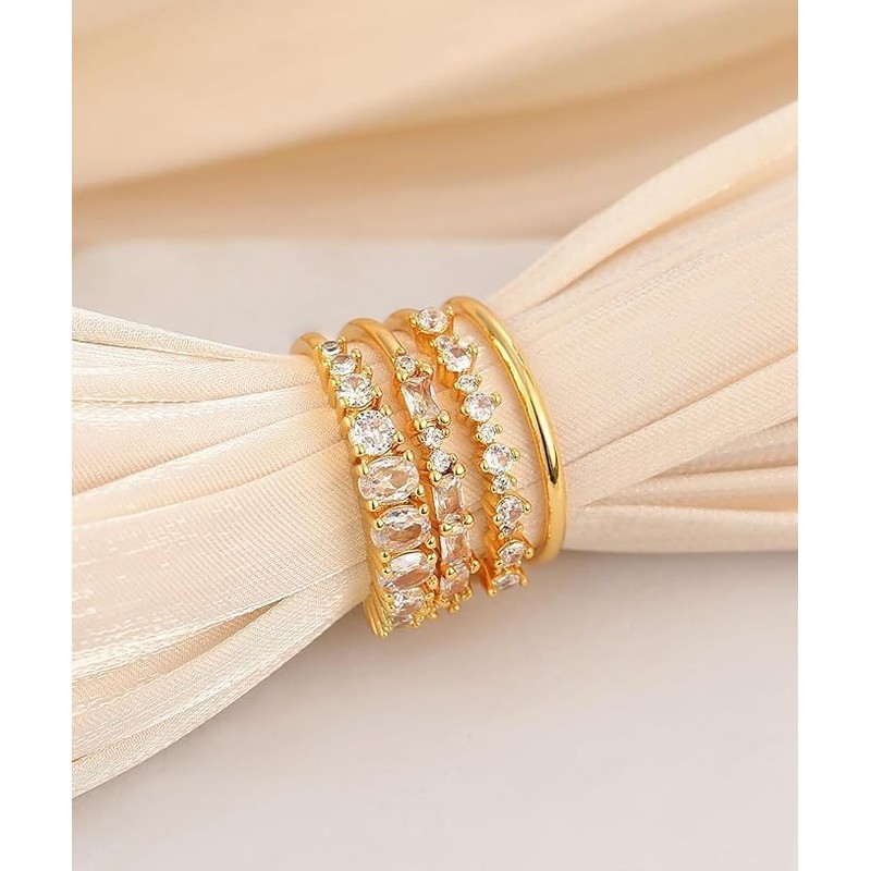 - STACKABLE DESIGN FOR VERSATILITY: Create a custom look with these dainty gold rings for women non tarnish. Their stackable design allows you to mix and match, creating a unique set of rings that reflect your personal style. Whether worn alone for a minimalistic look or stacked together for a bolder statement, these rings are perfect for any occasion.