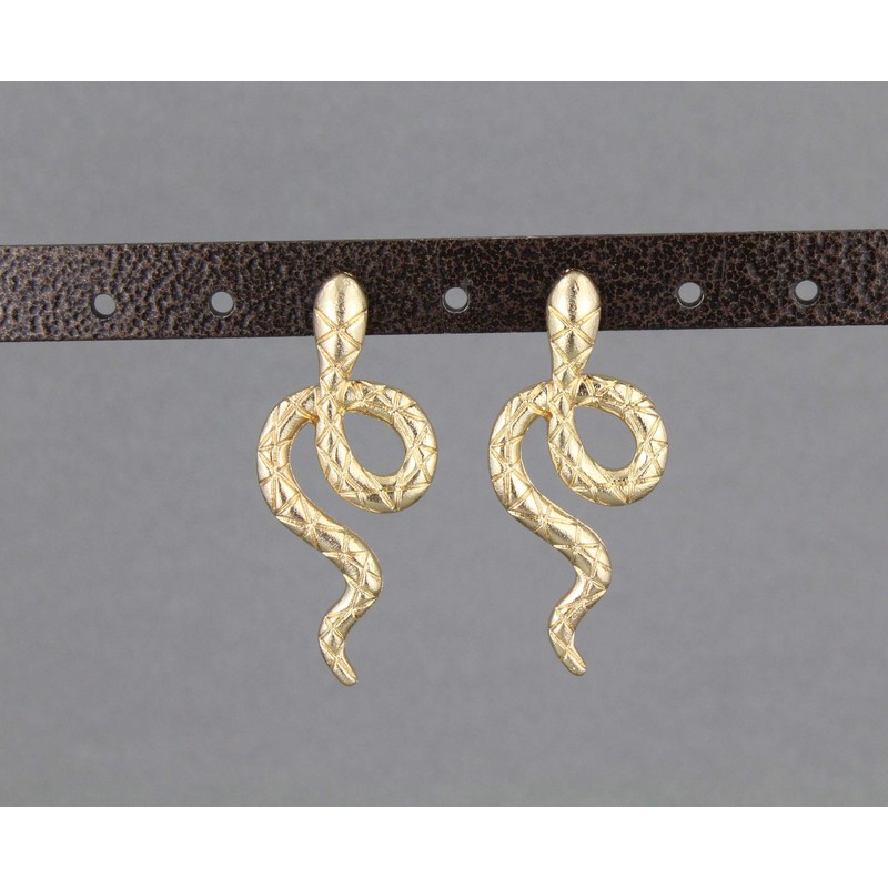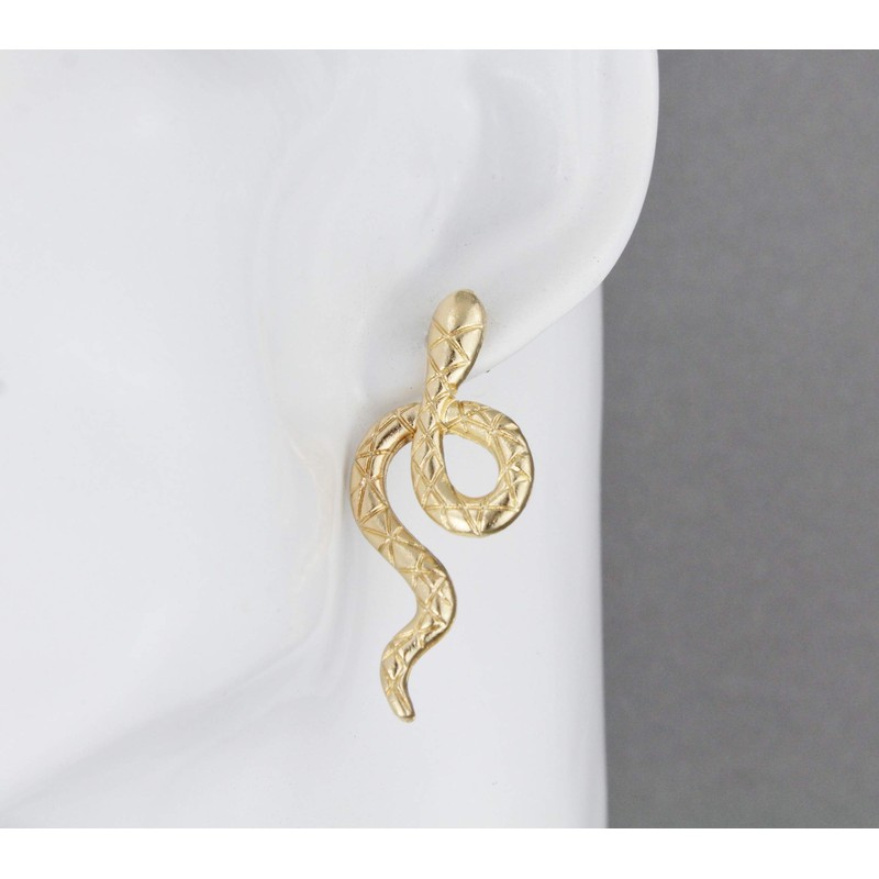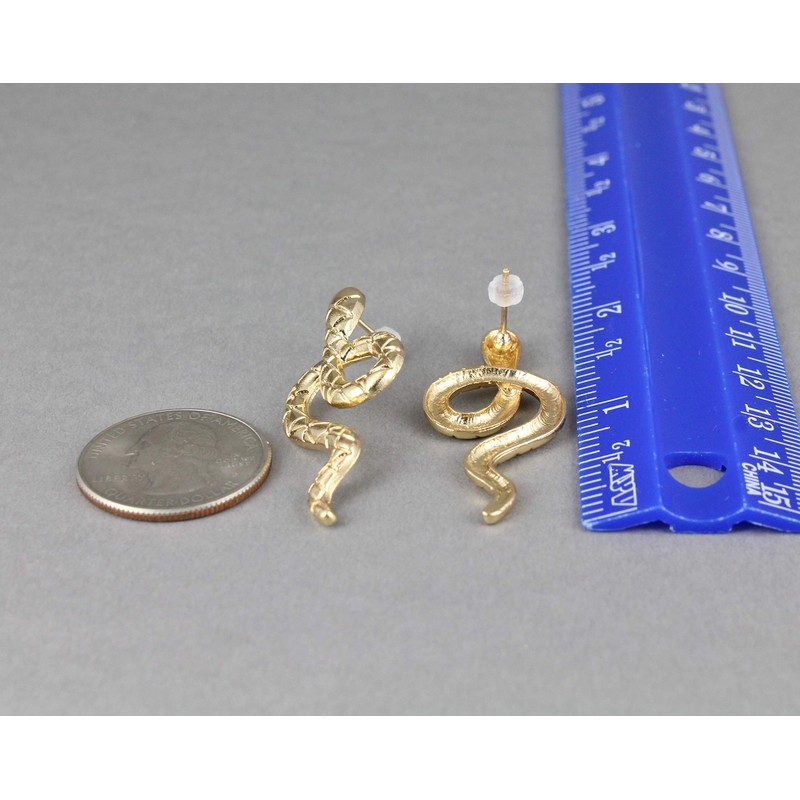 gold snake earrings asp cleopatra toga serpent post stud dangle 1 5/8 inches long coiled snake earrings