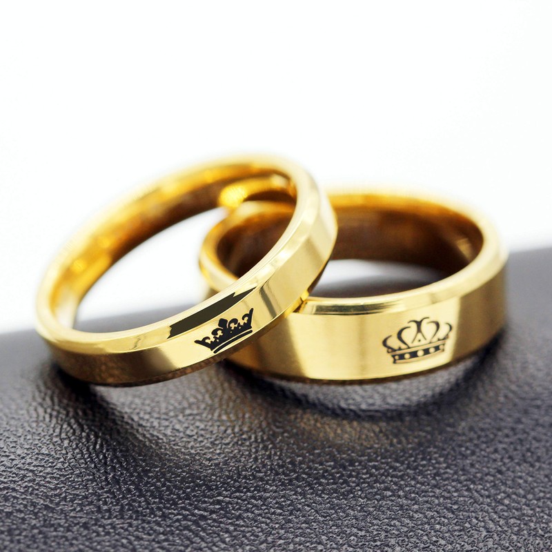 Gold Stainless Steel King Queen Ring for Couples, His and Hers Wedding Band Engagement Rings for Women and Men (Men 10, Women 9)