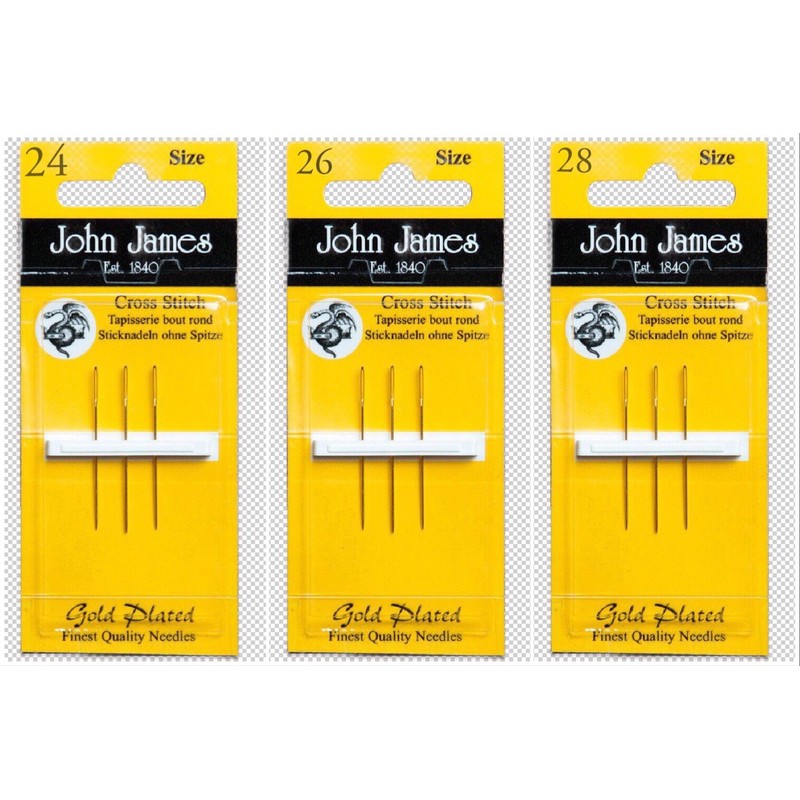 - John James Tapestry needles Sizes 24, 26 & 28 (3 needles each pack).