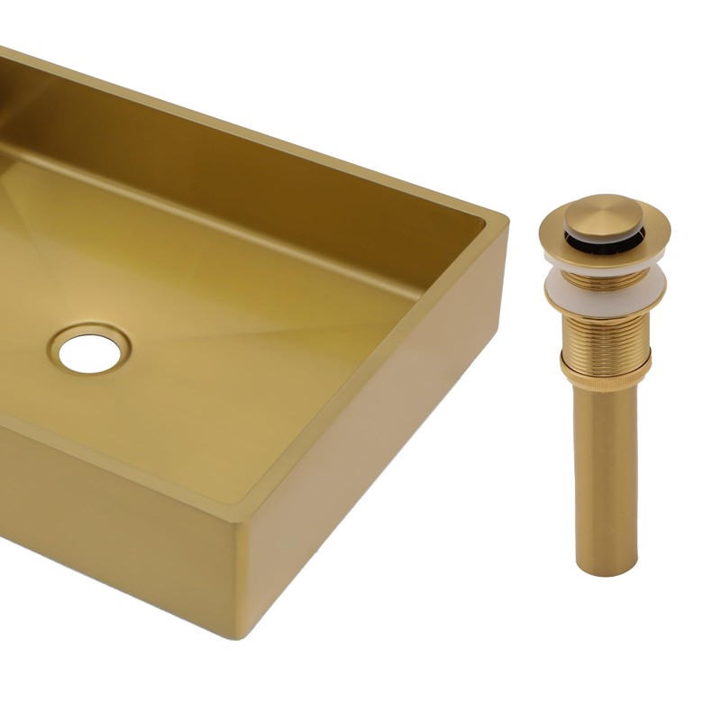 - Complete set includes a 19-inch gold stainless steel bathroom vessel sink, an umbrella pop-up drainer, mounting hardware, installation instructions and more. If any quality issue about the stainless vessel sink, please get in touch with us, our customer care team is always ready to help you - Fulorni Service.