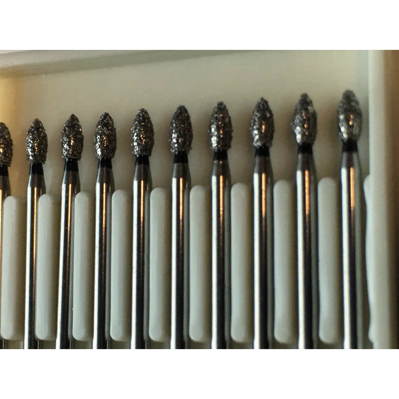 all burs have our safe shank warranty, hardened stainless steel shanks size 1.597mm diameter with strict tolerance for secure fit