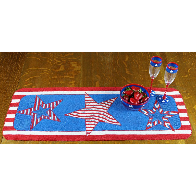Golden Hill Studio Patriotic Red, White and Blue Beaded Table Runner - 4th of July Decorations - Perfect for Tabletop and Kitchen Décor - Unique and Fun Celebrations of Summer or All Year Long!
