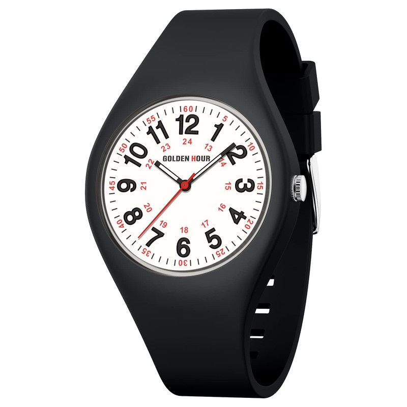 GOLDEN HOUR Waterproof Sports Analog Unisex Watches for Nurse Medical Professionals, Students - Military Time Glowing Easy to Read Dial, Jelly Silicone Strap in Black