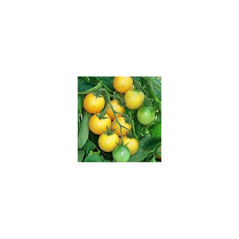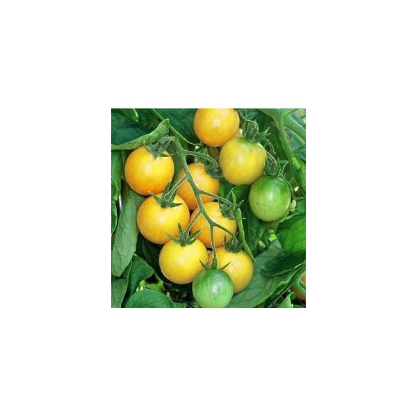 A cherry tomato is a smaller garden variety of tomato. It is popular as a snack and in salads. Cherry tomatoes range in size from a thumbtip up to the size of a golf ball, and can range from being round to slightly oblong in shape. The more oblong ones often share characteristics with plum tomatoes, and are known as grape tomatoes. Golden Nugget Cherry Tomato or Lycopersicon esculentum is an early Cherry Tomato. Bright gold 1" fruits. Mostly seedless with high yields. Compact plant. Very sweet, flavorful and crack resistant.Growth Type: Determinate Days to Maturity: 55-60