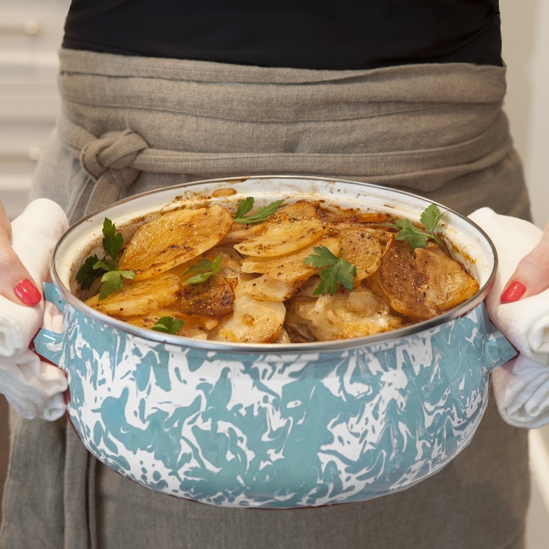 Golden Rabbit Enamelware - Sea Glass Teal Swirl Pattern - 4 Quart Dutch Oven