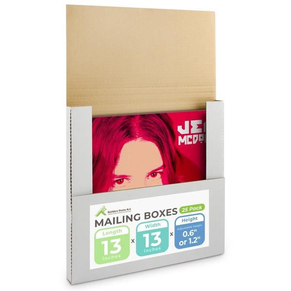 Golden State Art, 13x13x1 Inch Vinyl Record Shipping White Box, Cardboard Album Mailing Gift, lp Record Business Mailer, Protcet Square Frame, 25 Packs