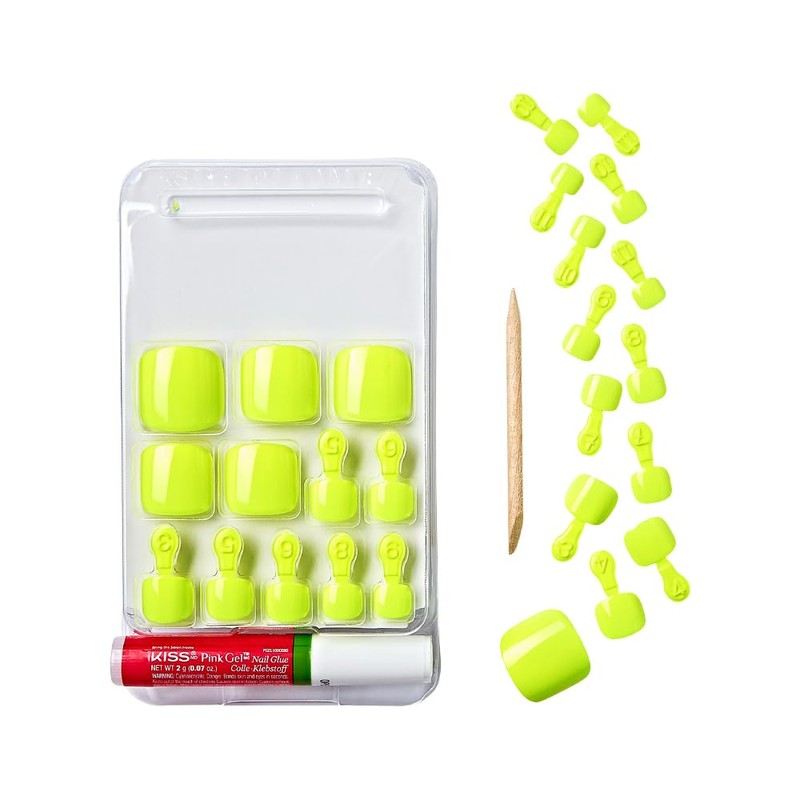GoldFinger Press On Toenails Kit, High Pigment Neon Yellow Color Fake Toenail, Ready to Wear Gel & Manicure Stick, 2g Glue included, Long-Lasting Convenient & Easy to Apply