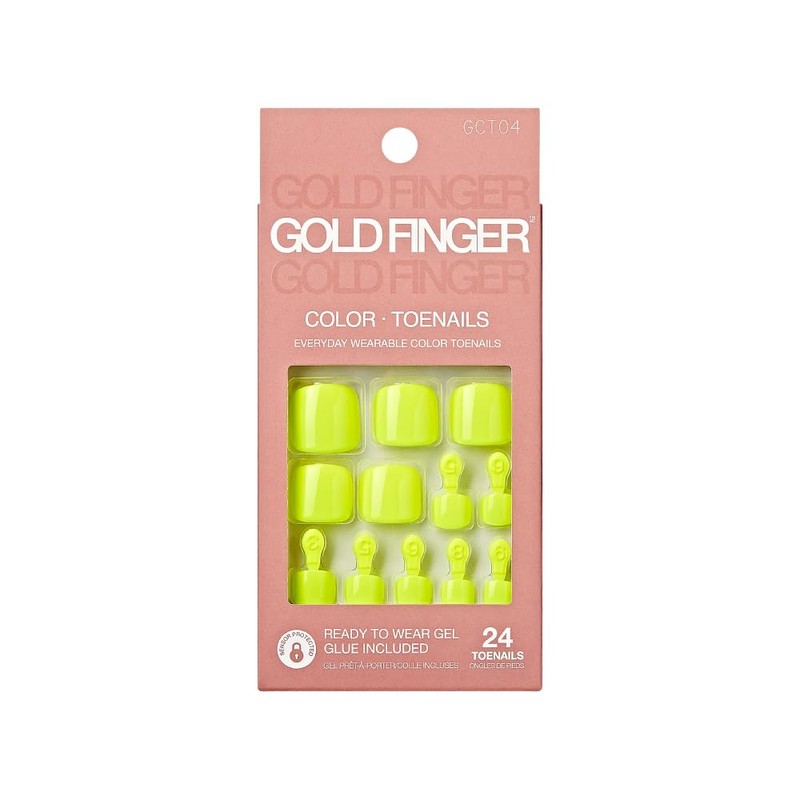 - 【GOLDFINGER CONVENIENT KIT】: The Kit includes Everyday Wearable Trendy color & designed toe nails, pink gel glue (2mL), and a manicure stick.