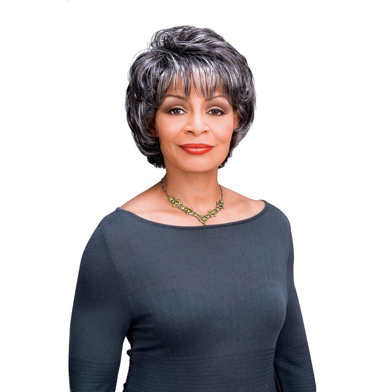 **ADDITIONAL INFORMATION:** **Type:** Grey Wig - Synthetic **Length:** Short **Style:** Straight **Cap Size:** Average cap size .