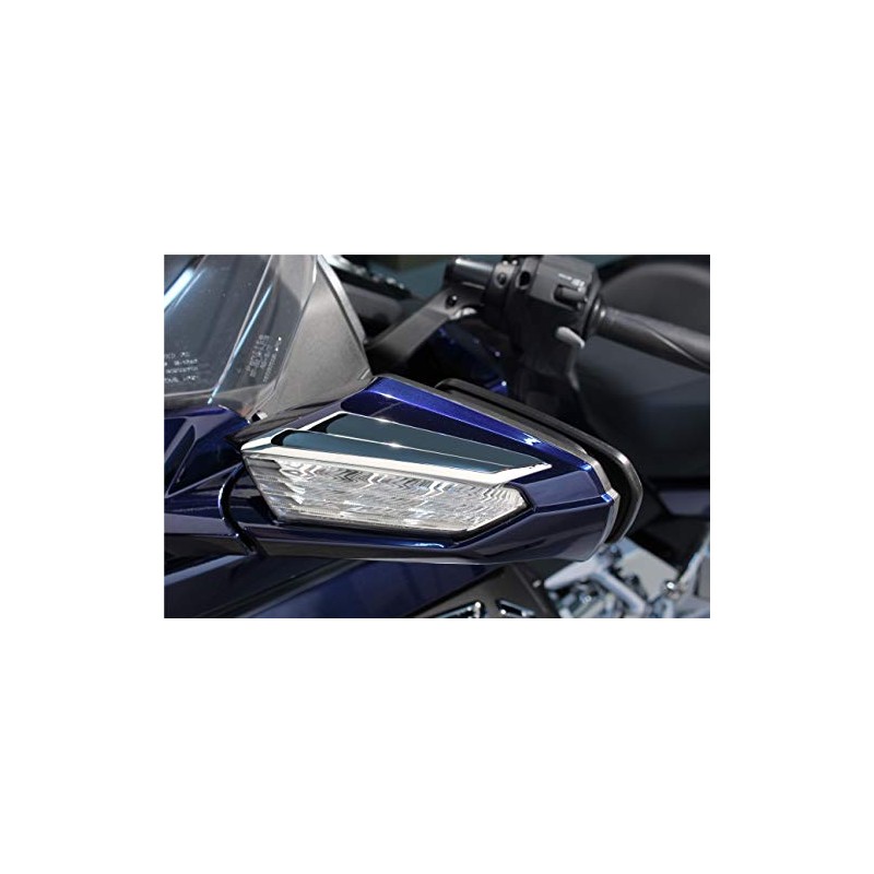 For a bold statement use the Goldstrike Mirror Accents. These winged accents are available in brilliant chrome or gloss black. Our mirror accents bring the iconic 'Wing styling through the mirrors, enhancing the the performance inspired sleekness of the new Wing. With simple installation, you will up your style game for years! Fits: 2018-up Gold Wing 2018-up Gold Wing DCT 2018-up Gold Wing Tour 2018-up Gold Wing Tour DCT 2018-up Gold Wing Tour DCT Airbag **Will NOT work with TWINART Mirror Surround (P/N 78325/78326)