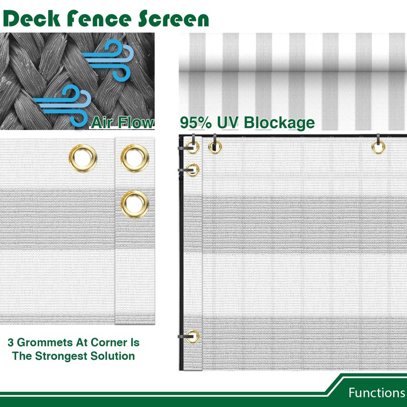 - Privacy Protection: Balcony fence screen effectively blocks neighbors' views and muffles pets' barking. Featuring breathable shade fabric, it prevents water accumulation and reduces wind force while blocking UV rays and allowing for air circulation