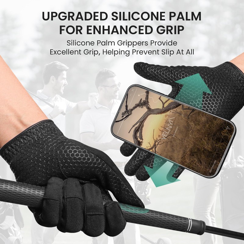 • Strong Grip for Better Control-The special textured palm design helps you maintain a firm, steady hold on the club during your swing. Works reliably in both dry and wet weather conditions, allowing natural hand movement while ensuring consistent club control throughout your game.