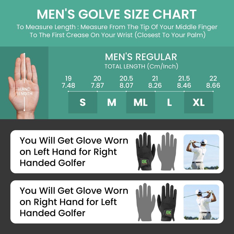 Golf Gloves Men Left Right Hand Premium 2 Pack 1 Pair,Men's Golf Gloves Anti-Slip Stretch Design with Enhanced Grip in Breathable Fabric Available in S M ML L XL Sizes (ML, Ambidextrous)