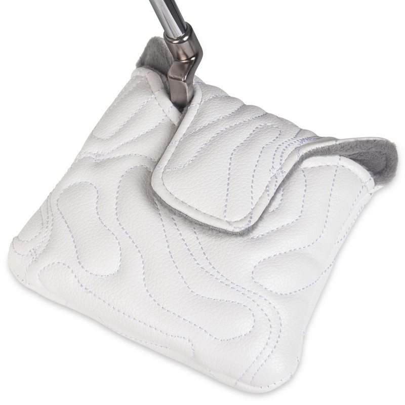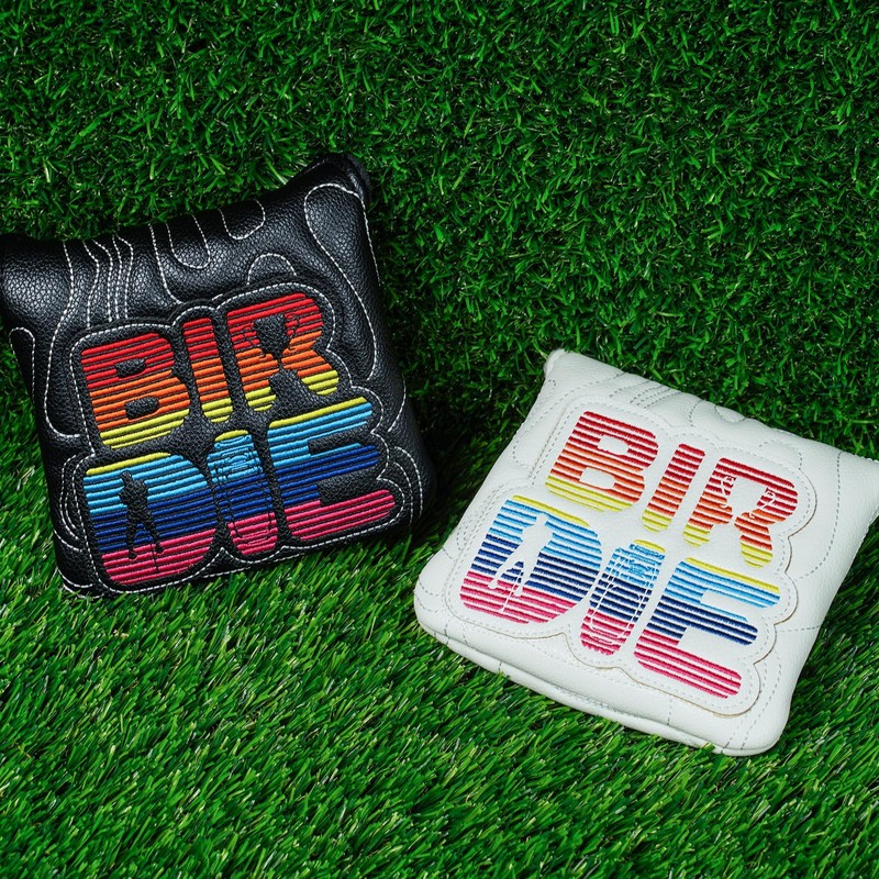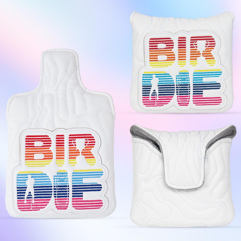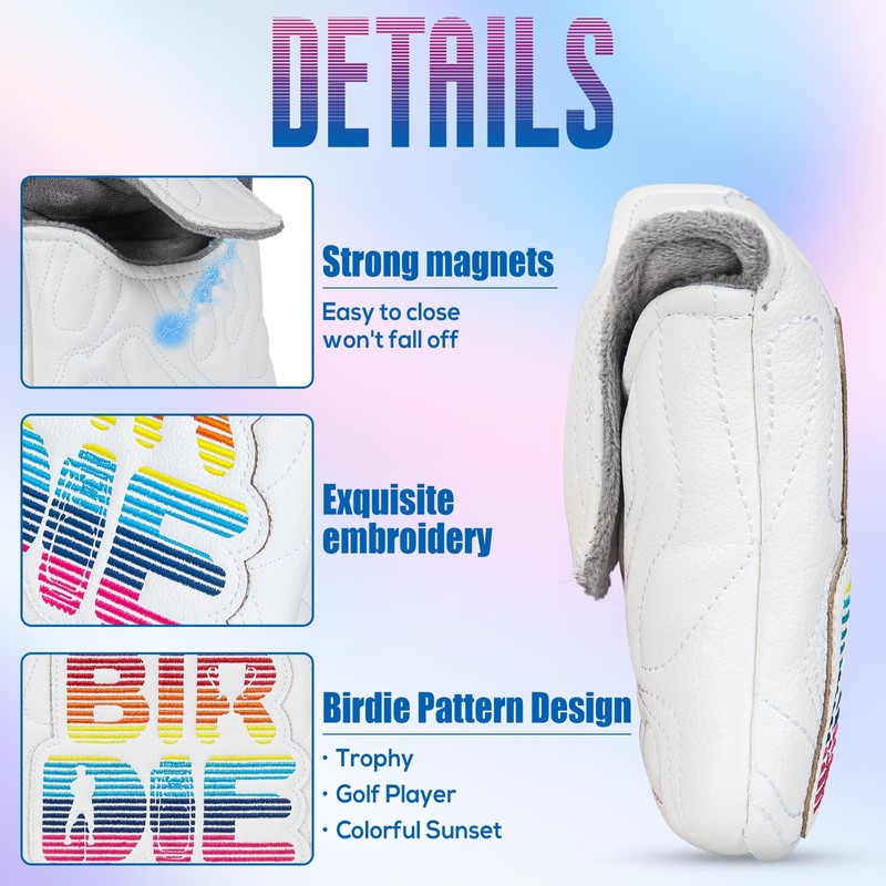 Golf Mallet Square Putter Cover Magnetic Heel-Shaft Headcovers BIRDIE Pattern White PU Leather