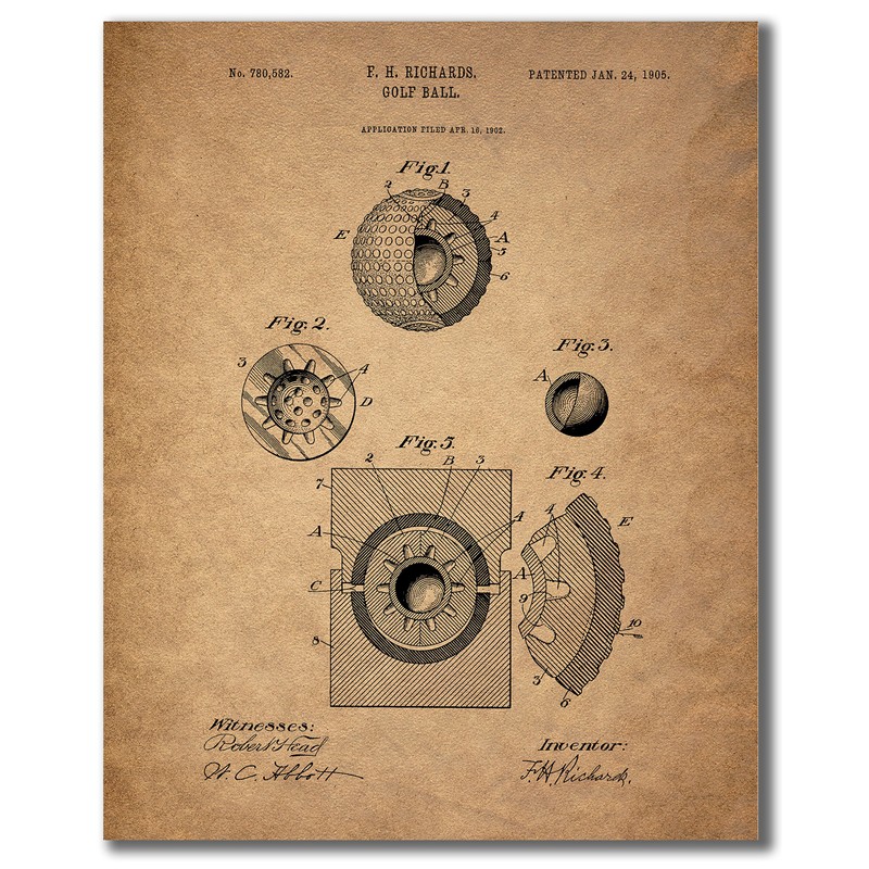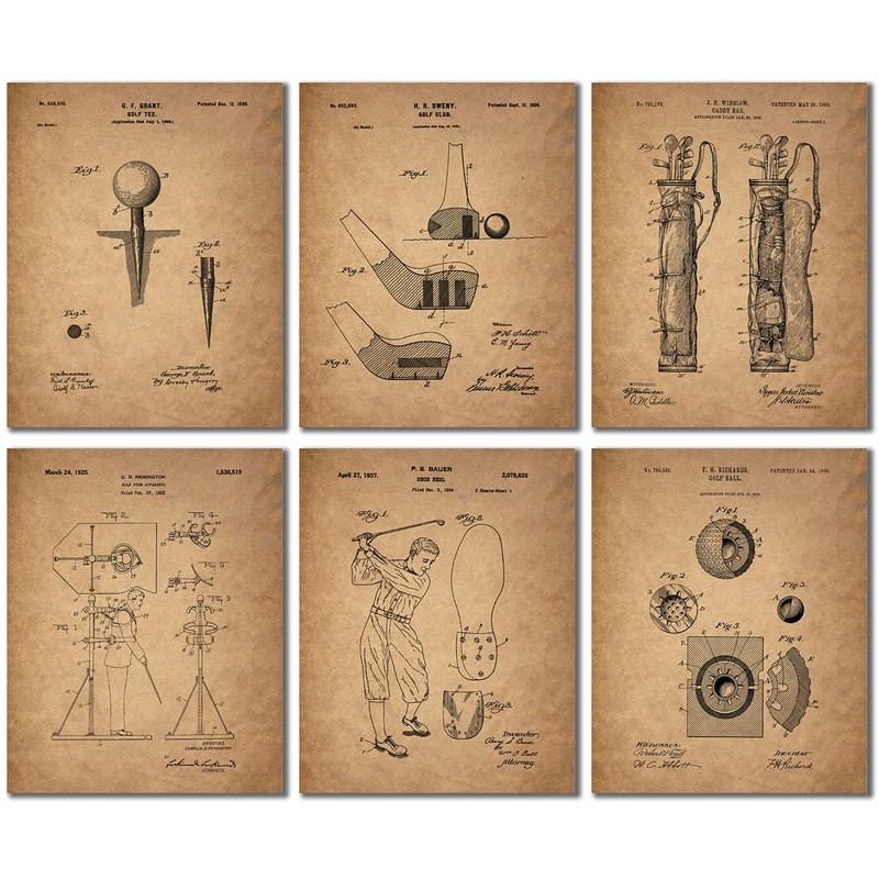 Golf Patent Wall Art Prints - Set of 6 Photo Prints