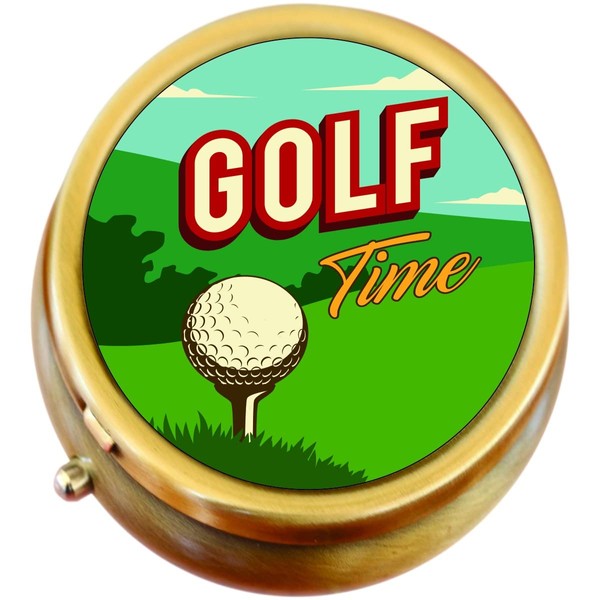 Golf Time Vintage Poster Brass Pill Box