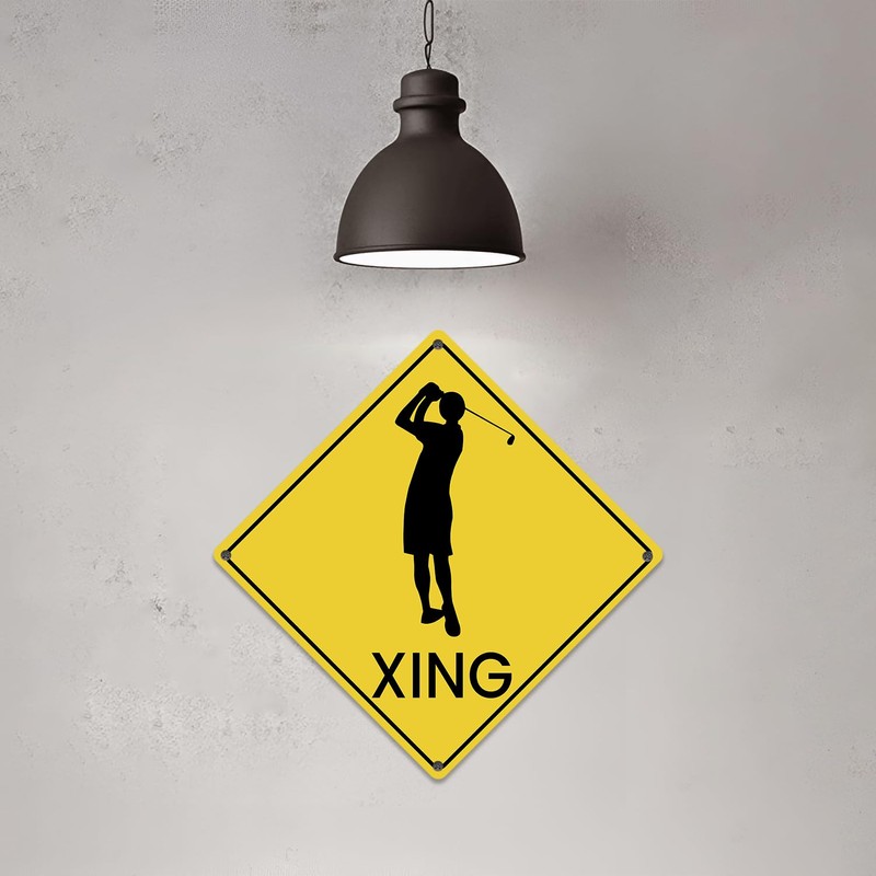 Golfer Golf Crossing Xing Sign Funny Aluminum Road Signs 12 x 12 Inch