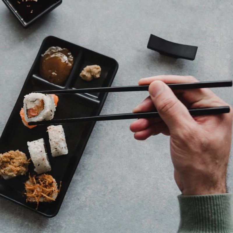 Goliber 4 Pairs of Chopsticks - Japanese Style Sushi Dinnerware Set (Black)