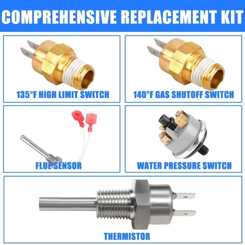 GOLICC Pool Heater Repair Kit - Replacement for Pentair MasterTemp & Max-E-Therm Heaters, OEM #42002-0024S, 42001-0053S (Includes Stack Flue Sensor, Thermistor, Switch)