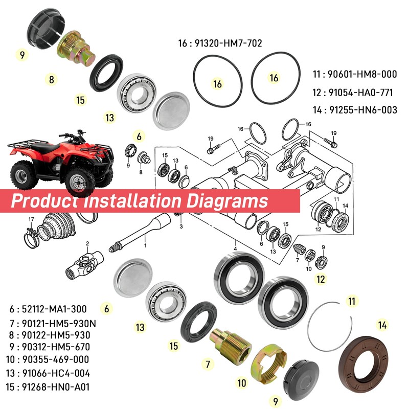 - REPLACE OEM NUMBER: 91320-HM7-702, 91054-HA0-771, 90601-HM8-000, 91255-HN6-003, 90312-HM5-670, 90122-HM5-930,90121-HM5-930, 52112-MA1-300, 91268-HN0-A01, 90121-HC4-000, 90355-469-000