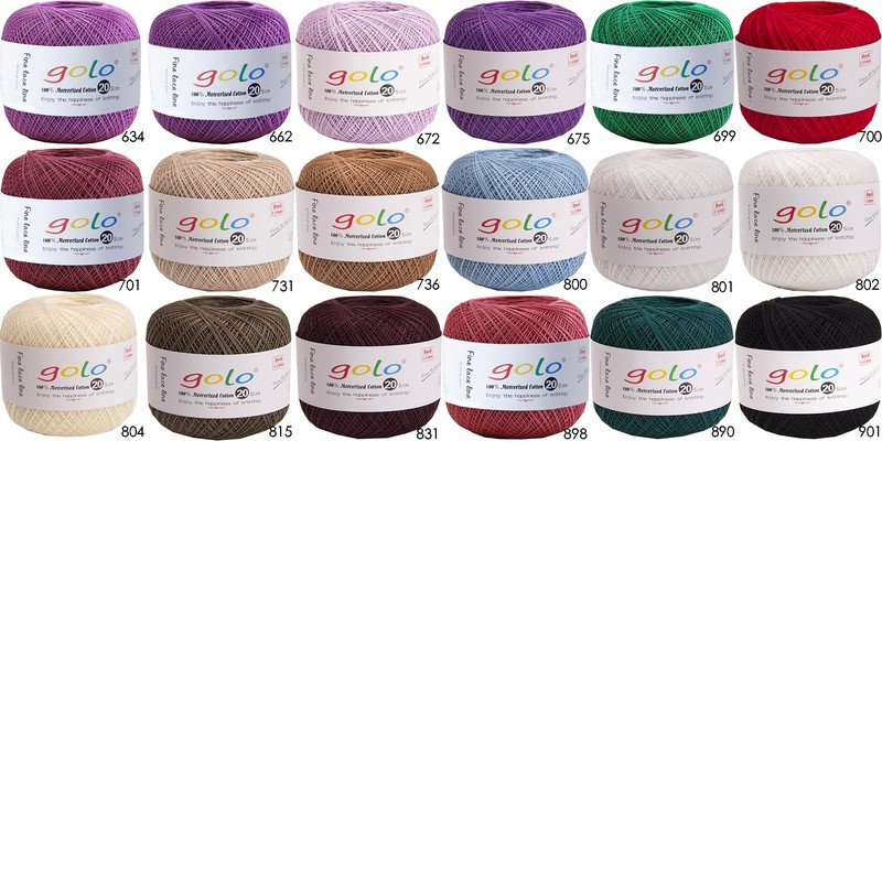 - Quality material:The golo yarn is made of mercerized cotton, smooth surface and bright color,Suitable for crocheting,Knitting,Tatting,Embroidery,hats,florals,tablecloths,etc.het flowers,dolls and other handicrafts.