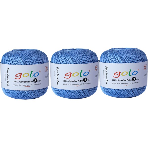 golo Crochet Thread Size 3 Yarn for Hand Knitting 3 Balls Crochet Yarn for Crocheting