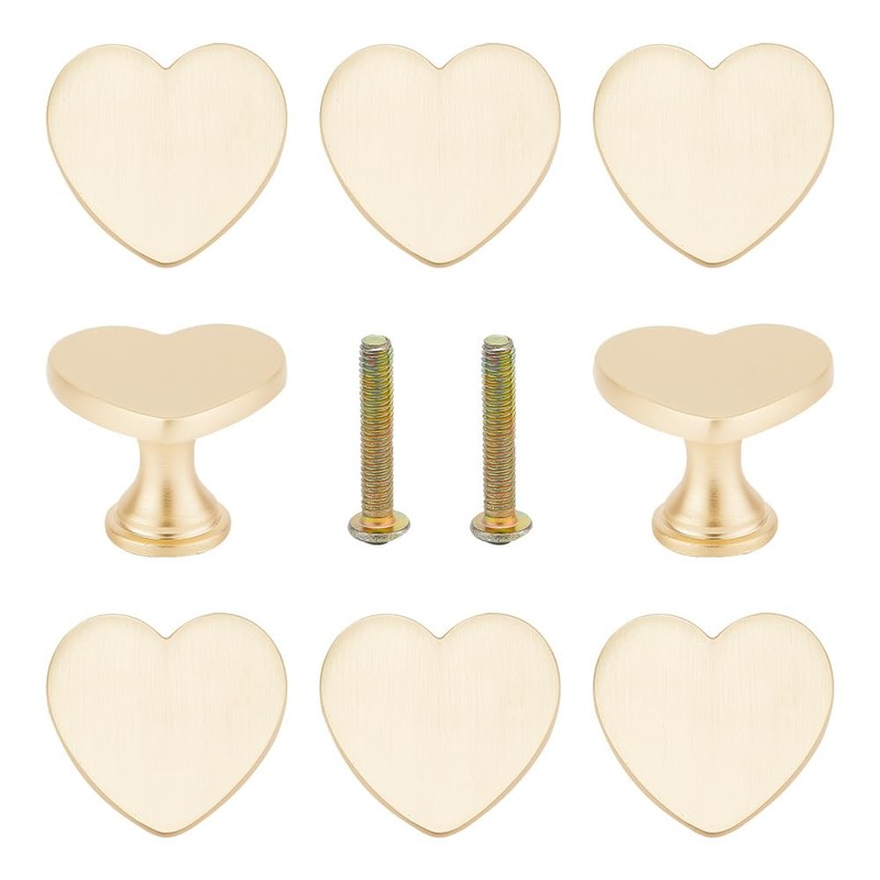 GOMAKERER Pack of 8 Alloy Drawer Knobs, Heart-Shaped Metal Handle for Cabinet and Dresser Handles with Screws Golden Furniture Knobs for Home, Cupboard, Wardrobe, Bathroom