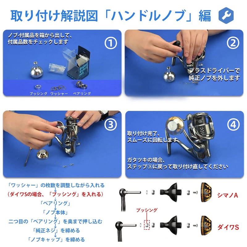 Gomexus T41 Reel Handle Knob, Titanium Daiwa Type S, Shimano Type A, Twin Power, Legalis Vanquish Handle, Replacement 1.6 inches (41 mm), Compatible with Spinning Reel and Bait Reel, Blue Fishing, Sea