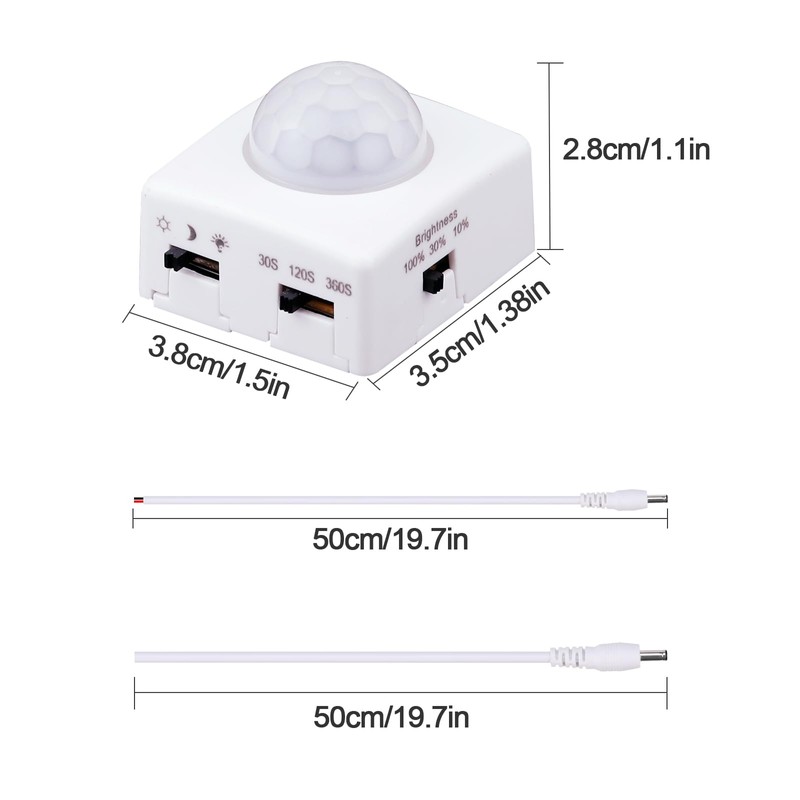 GOMING DC 5V 12V 24V Dimmable PIR Human Motion Activated Sensor Switch 3 Lighting Modes 3 Timing Off Modes 3 Brightness Modes for DIY LED Lighting(Max Load 72W)