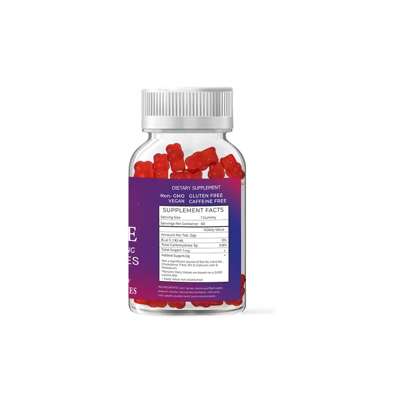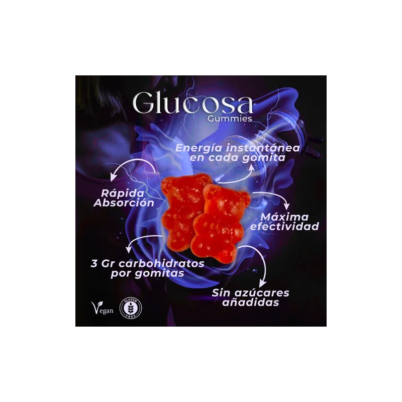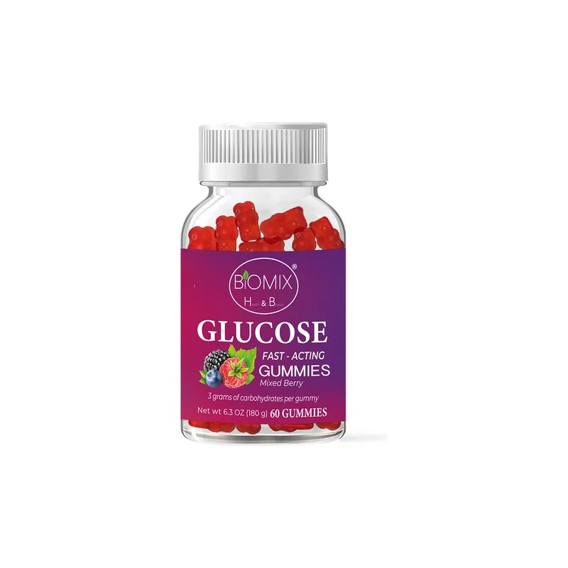 Gomitas De Glucosa De Acción Rápida Frasco Con 60 Sabor Bayas Mixtas, Sin azúcares añadidas, Veganas