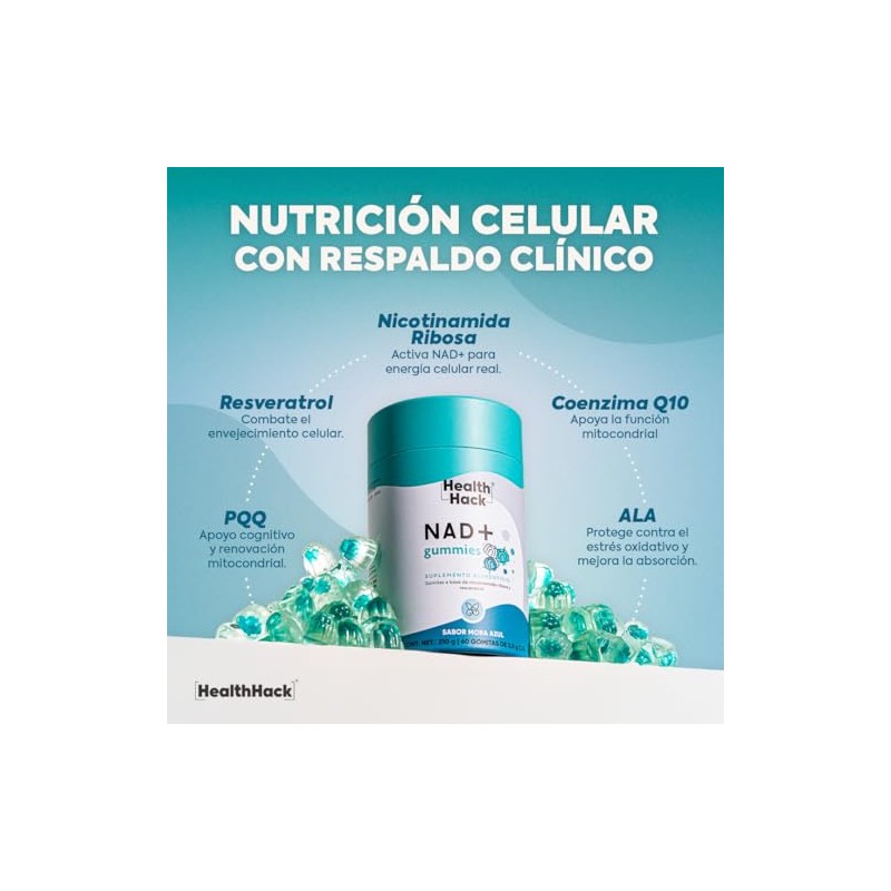 Health Hack - Gomitas de NAD+ con Resveratrol sabor Mora Azul | 60 gomitas para 1 mes con Quercetina, Nicotinamida Ribosa, Q10 coenzima, Ingredientes Naturales, Formula Vegana Sin Azucar | Health Hack - NAD. ⭐ Calidad premium certificada con excelentes reseñas. Construcción robusta y atención al detalle. 💎 Calidad superior certificada. Ideal para quienes buscan lo mejor en calidad y estilo. Producto auténtico con satisfacción total asegurada. ¡No te quedes sin el tuyo y aprovecha esta oportunidad única!