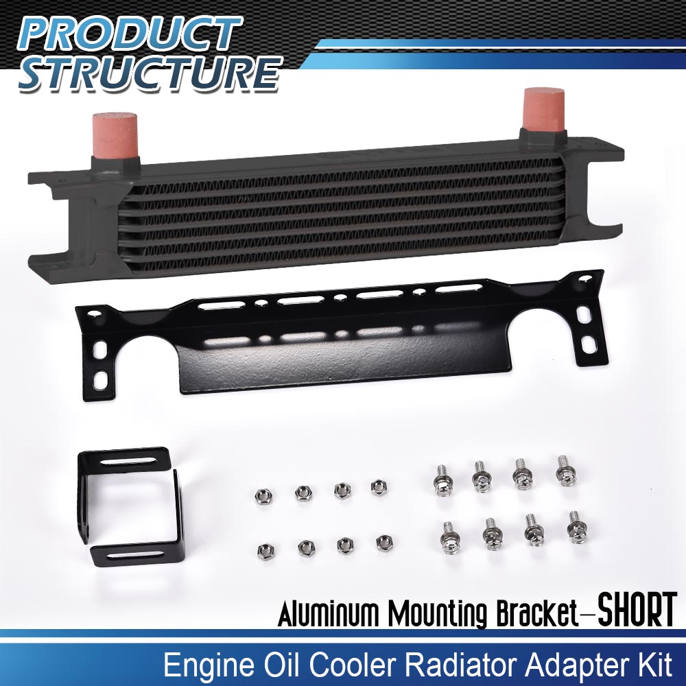 goneparts 7 Row 10 AN Universal Aluminum Engine Oil Cooler+ Brackets Kit +Mounting Bracket