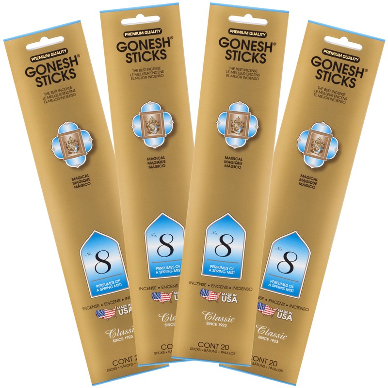 - ETHICAL PRACTICES: Ganesh Incense utilizes fair trade labor and environmentally responsible production methods to give you the best incense around. MADE IN CHICAGO, USA. Packaging is recyclable..Included Components: 4 (20Stick) Incense Packages