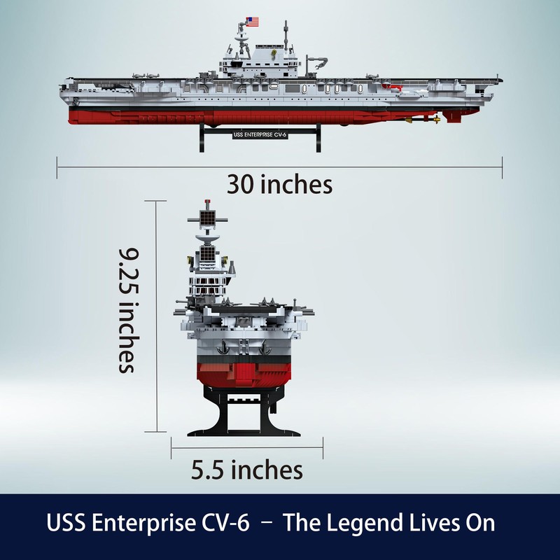 • Authentic WW2 Aircraft Battleship Replica: Build a detailed 30" L × 5.5" W × 9.25" H model of the legendary USS Enterprise CV-6; features include turrets, lifeboats, radar antennas, and molded plane