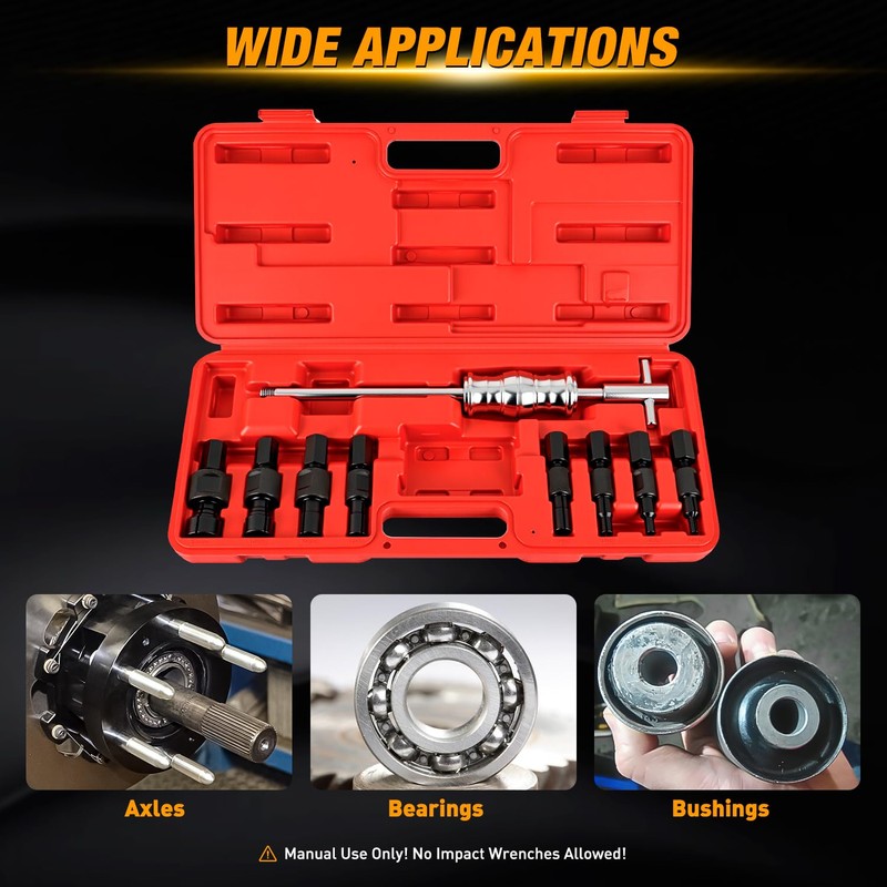 - EFFECTIVE OPERATION: The sliding hammer works by effectively remove parts through inertia. The operation is very simple, attach the T-handle to the slide hammer, nstall the appropriate split collet, fix it on the bearing, and operate it with the sliding hammer. It is very suitable for professional and self-use