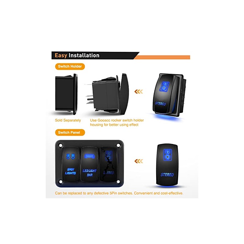 - Easy to install and use: 5 pin on-off rocker switch with SPST design (single pole single Throw), simple installation, freely turn on or off the light